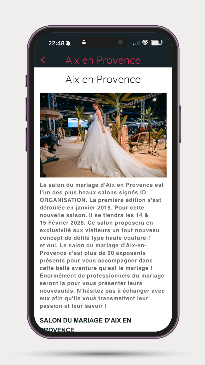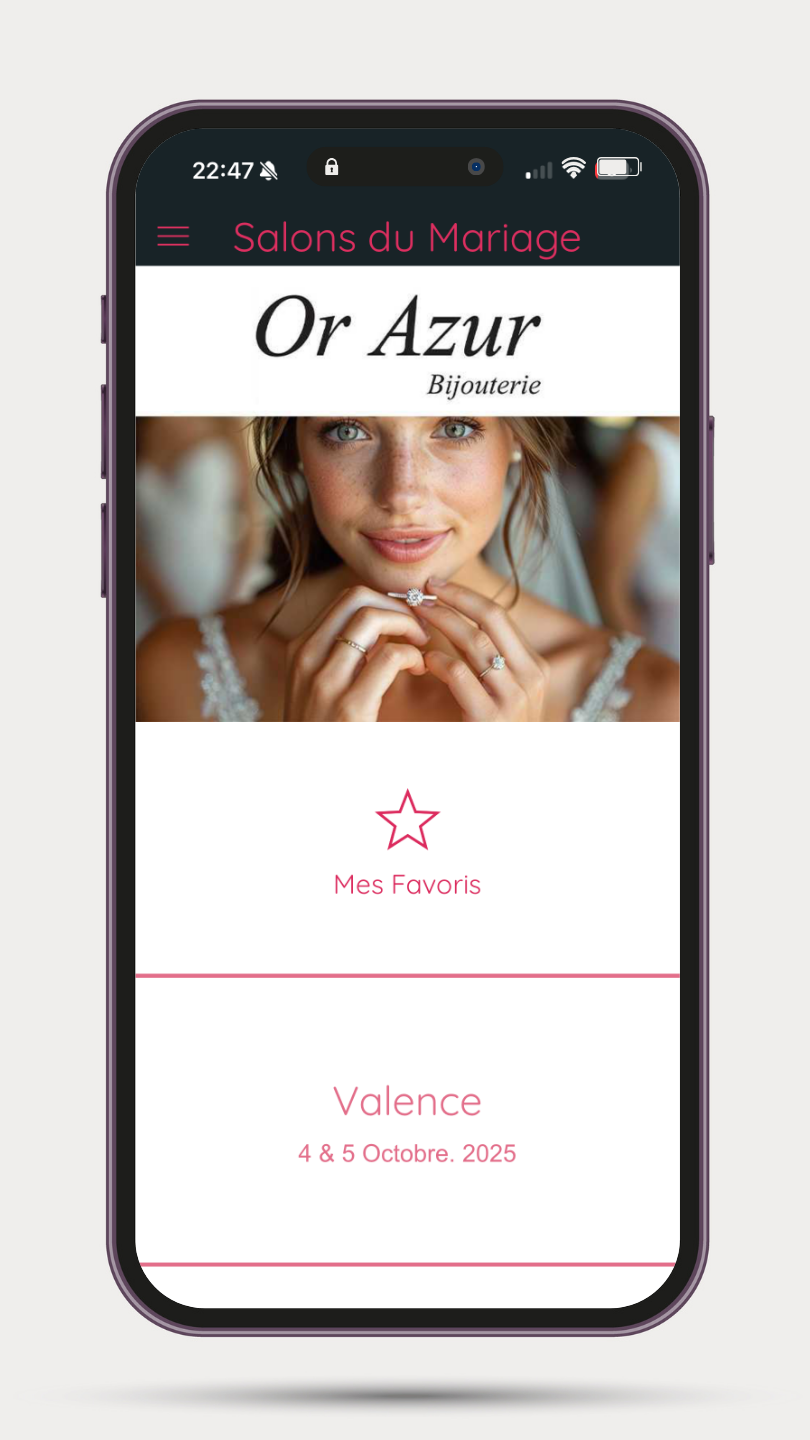 Qu’il s’agisse d’un salon du mariage, d’un événement bien-être, d’un festival culinaire, d’un salon professionnel B2B ou d’un marché artisanal, on développe des outils digitaux adaptés à chaque format, chaque public, chaque ambiance. Des exemples ?